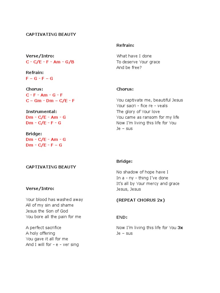 Praise Worship Chords Transposer. Chords for Captivating Beauty - Victory Worship LYRICS. Chords for Captivating Beauty - Victory Worship.
